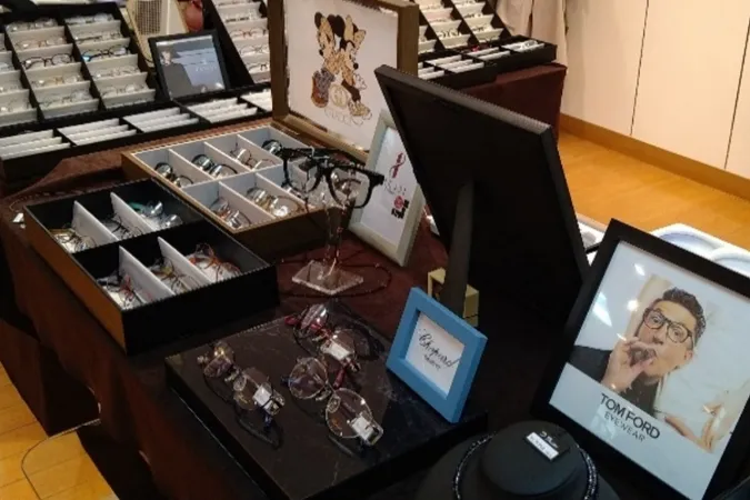 店内の一角に「メガネ・ジュエリーコレクション」を設営し、洋服とのコーディネートも楽しめる展示販売会を開催。